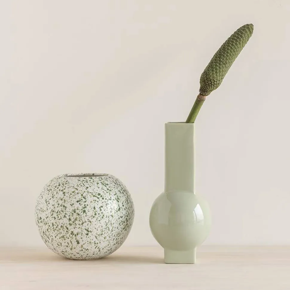 Geometrie Is Het Archetype Van De Schoonheid Van De Wereld. Johannes Kepler | De Livio Vaas Van Urban Nature Culture Is Een Echte Evenwichtsoefening, Waarbij Geometrische Vormen En Organische Lijnen Onverwacht Hun Krachten Bundelen. Zijn Ronde Buik En Rechthoekige Nek En Voet Hebben Een Glanzend Zeeschuimgroen Glazuur – Klaar Om De Bloemen Te Omhelzen En De Natuur In Een Klein Stukje Stadsontwerp Te Wikkelen.