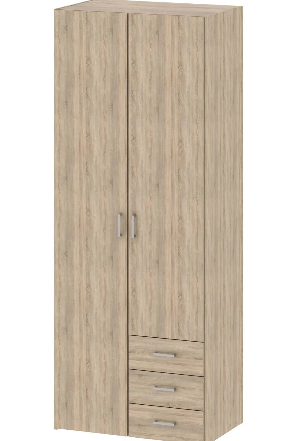 Deze 2-Deurs Kledingkast Space Pas Perfect In Iedere Slaapkamer. Deze Kast Heeft Links Een Hanggedeelte Met Daarboven Een Legplank. Rechts Bevinden Zich 4 Legplanken En 3 Lades. Genoeg Ruimte Om Al Je Kleren En Accessoires In Op Te Bergen! De Kledingkast Is Gemaakt Van Spaanplaat En Is Afgewerkt Met Een Eiken Fineer Laag.