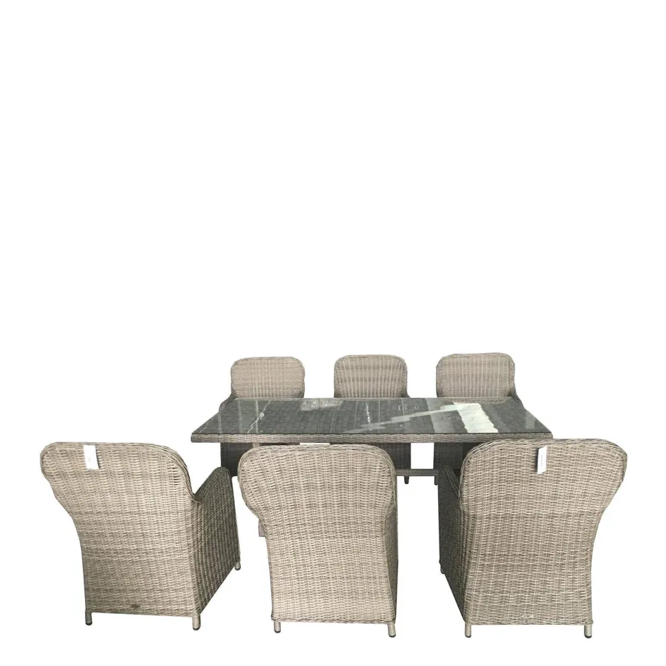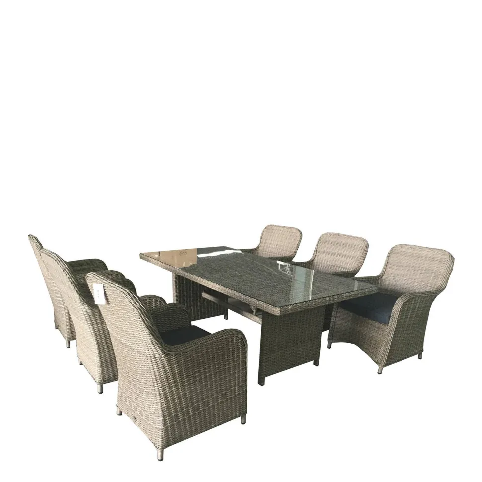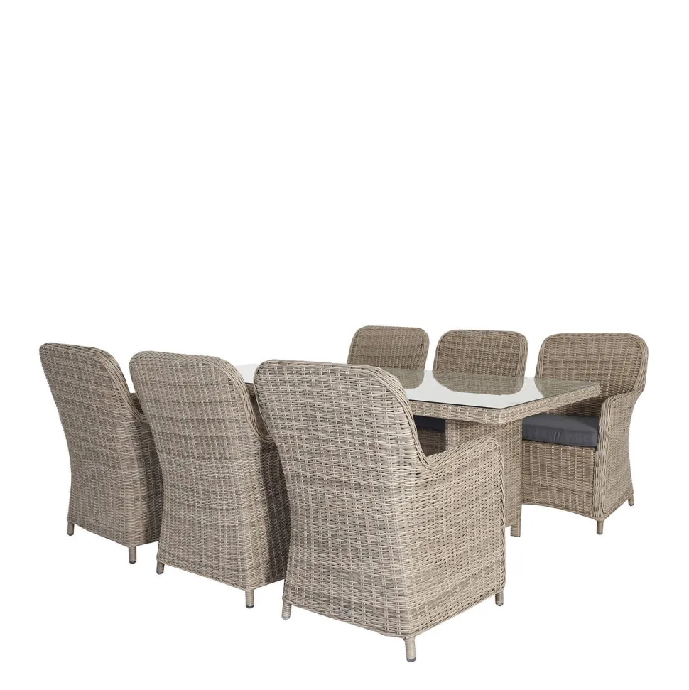 Deze Toulouse Tuinset Is Van Het Merk Wehkamp Home. De Toulouse Bestaat Uit Een Mooie Tuintafel En 6 Tuinstoelen. De Tuinset Is Gemaakt Van Wicker, En Heeft Een Frame Van Staal. De Tuintafel Heeft Een Tafelblad Van Glas. Dit Geeft De Tuinset Een Luxe Uitstraling. Deze Tuinset Doet Het Werkelijk Goed In Elke Tuin! Met Grijze Tuinkussens.