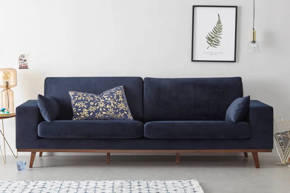 Deze Betaalbare Design Topper Is Bekleed Met Een Zachte Velours Stof In Een Rijke Donkerblauwe Kleur. Deze Zachte Stof Draagt Bij Tot De Chique Uitstraling Van Deze Bank. De Hoezen Van De Rug En Zitkussens Zijn Afneembaar: Heel Handig Als Je Kinderen Hebt Die Weleens Knoeien! De Slanke, Schuingeplaatste Poten Van Donker Hout Geven Een Retro Knipoog Aan Deze Eigentijdse Bank. Om De Bank Helemaal Af Te Maken, Worden Er 2 Sierkussens Meegeleverd. Niet Alleen Mooi, Maar Ook Fijn Om Als Hoofdkussen Te Gebruiken Bij Een Middagdutje Op De Bank!