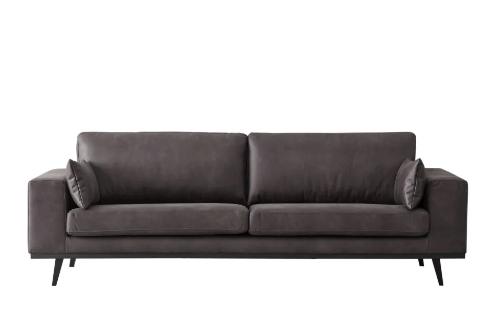 Deze Torino Is Bekleed Met Gerecycled Leer In De Kleur Antraciet. Dit Materiaal Heeft Een Warme Uitstraling En Draagt Bij Aan De Luxe Look Van Deze Bank. De Slanke, Schuingeplaatste Poten Van Zwart Hout Geven Een Retro Knipoog Aan Deze Eigentijdse Bank En Zorgen Voor Een Ruimtelijk Gevoel In Je Woonkamer. Bij De Torino Worden 2 Bijpassende Sierkussens, Ook In Eco-Leer, Geleverd. Mooi, Maar Ook Fijn Voor Dutjes Op De Bank!