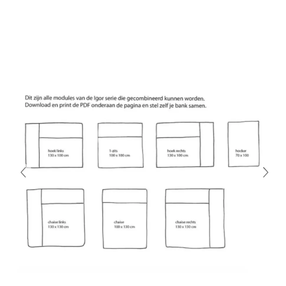 Deze 2-Zits Hoekbank Igor (Rechts) Is Van Het Merk Wehkamp Home. De Bank Is Modulair. Dit Betekent Dat De Onderdelen Van Deze Bank Op Verschillende Manieren Samen Te Stellen Zijn En Deze Op Veel Manieren Te Combineren Zijn. De Elementen Zijn Aan Alle Zijden Voorzien Van Bevestigingshaken. De Bank En Hocker Zijn Bekleed In Een Creme Kleurige Stof. Er Zijn Verschillende Modulaire Igor Bankstellen Verkrijgbaar. Lees Goed De Onderstaande Afmetingen Van Het Meubel. De Igor Elementen Zijn Namelijk Relatief Groot. Je Wilt Er Natuurlijk Zeker Van Zijn Dat De Igor Past In Jouw Woonkamer! Onderaan De Pagina Vind Je Ook Een Handleiding Die Je Hierbij Kan Helpen.
