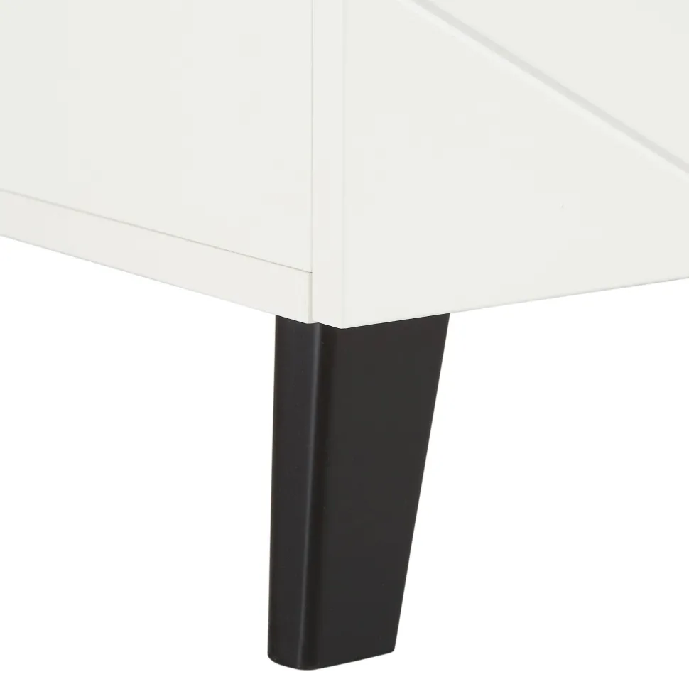 Het Tv-Meubel Is Afgewerkt In Het Wit Met Zwart Metalen Handvaten En Pootjes. Dit Geeft Het Meubel, In Combinatie Met De Details Aan De Voorzijde, Een Strakke Look! Dit Tv-Meubel Is Ook Verkrijgbaar In De Kleur Antraciet.