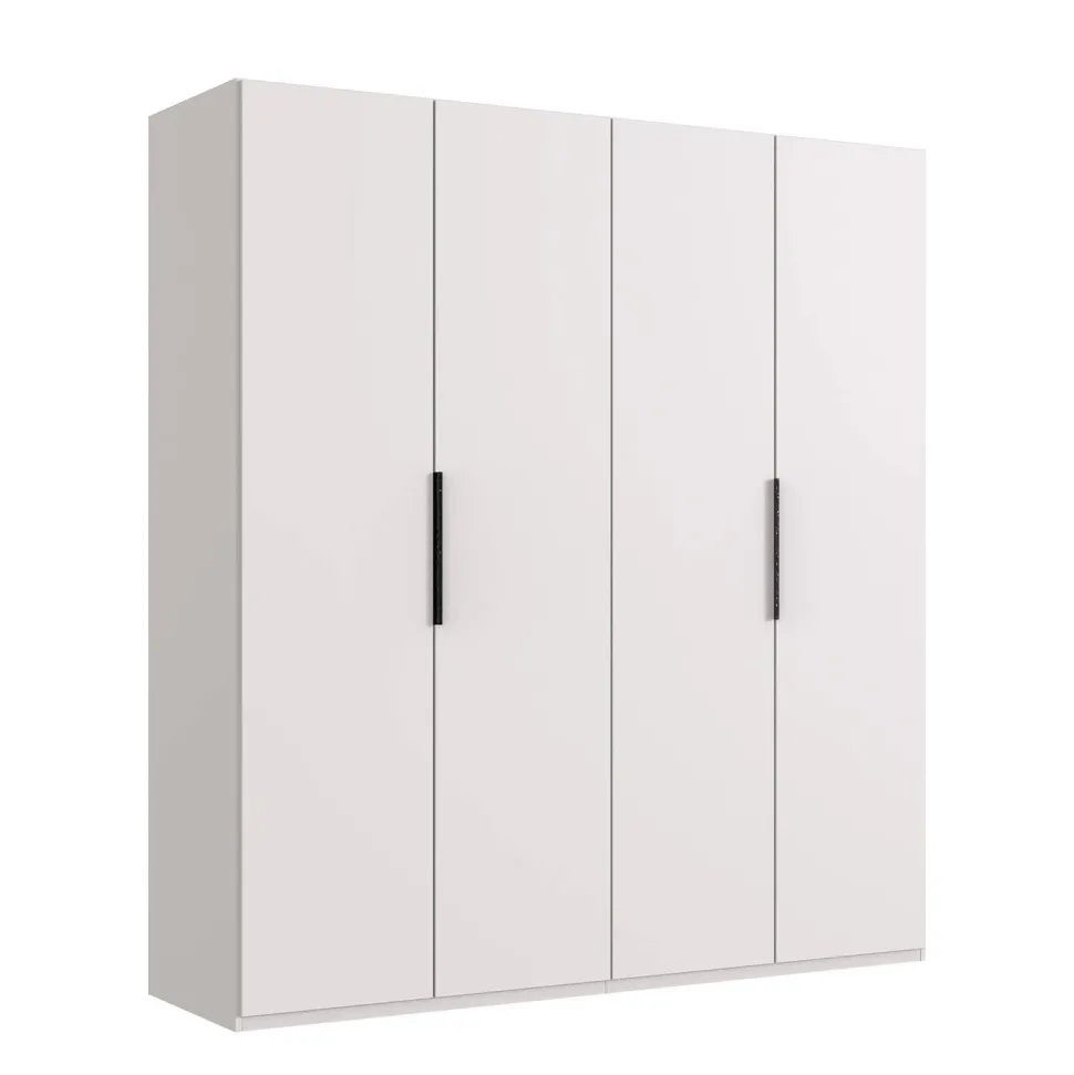 Deze 4-Deurs Kledingkast James Is Gemaakt Van Spaanplaat En Is Gepoedercoat In Een Witte Kleur. De Kast Heeft Een Strakke En Moderne Uitstraling En Past Goed In Vrijwel Iedere Slaapkamer. Binnenin De Kast Vindt U Twee Hangroedes En Twee Legplanken. Door De Lange Handgrepen Zijn De Deuren Van Deze Kast Gemakkelijk Te Openen.