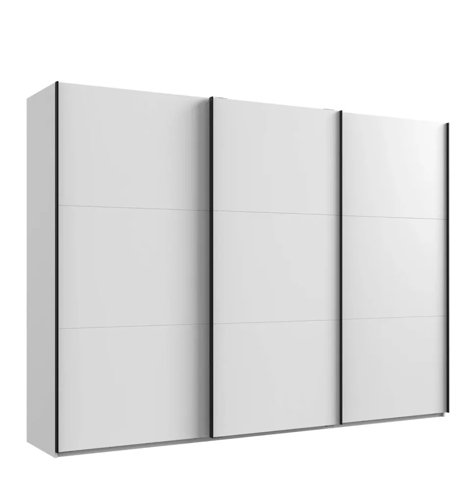 Deze 3-Deurs Zweefdeurkast James Is Gemaakt Van Spaanplaat En Is Gepoedercoat In Een Witte Kleur. De Kast Heeft Een Strakke En Moderne Uitstraling En Past Goed In Vrijwel Iedere Slaapkamer. Binnenin De Kast Vindt U Drie Hangroedes En Drie Legplanken.