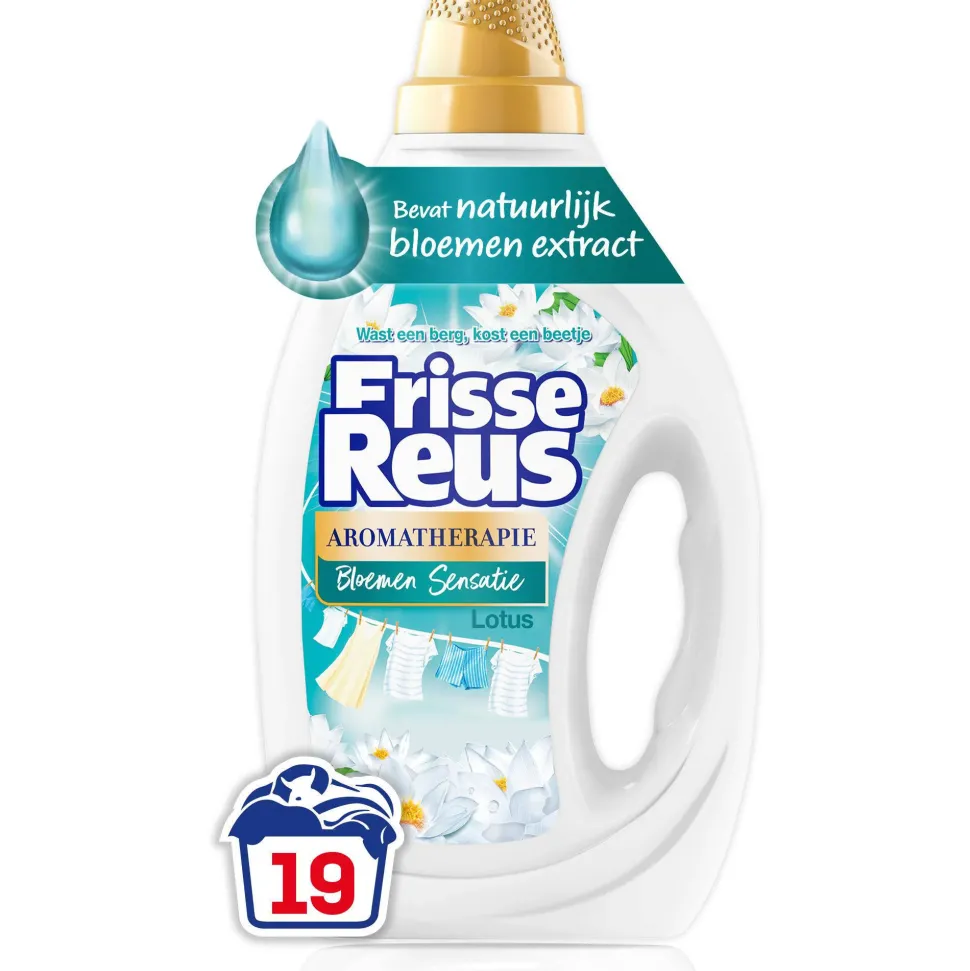Frisse Reus Gel Zorgt Voor Een Frisse En Schone Was Met Een Reuzengeurbeleving. De Aromatherapie Bloemen Sensatie Formule Geeft Uw Wasgoed Een Unieke En Langdurige Geur. Het Natuurlijk Bloemen Extract Zorgt Voor Een Verkwikkende Lotus Geur Met Elke Was. Daarnaast Is De Nieuwe Formule Actief In Koud Water, Voor Reuzenwaskracht Al Vanaf 20 °C! Schakel Over Naar Lage Temperaturen En Bespaar Energie, Zonder In Te Leveren Op Reuzenwaskracht. Goed Voor Het Milieu, En Voor De Portemonnee! Frisse Reus. Wast Een Berg, Kost Een Beetje.