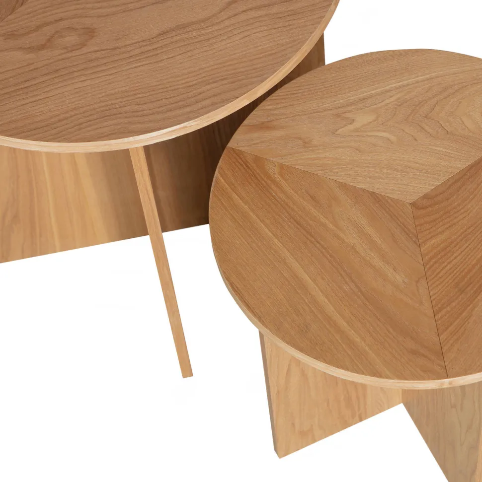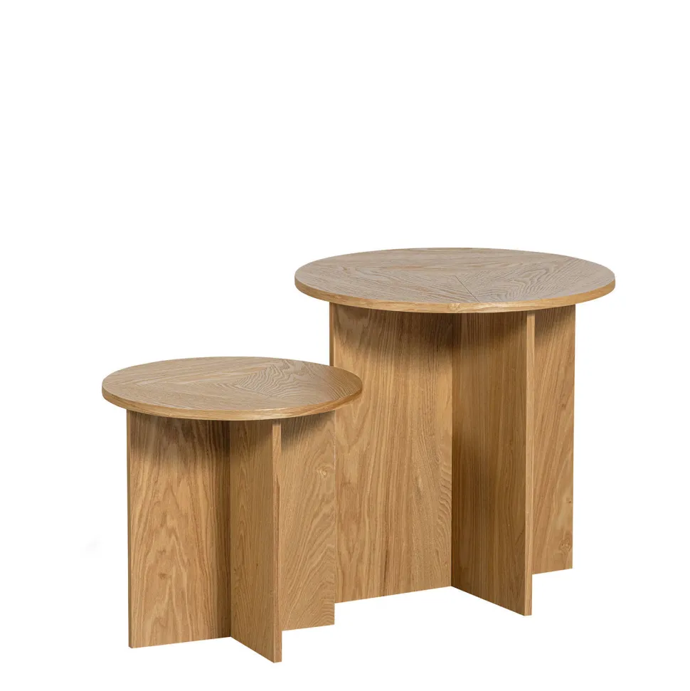De Lina Bijzettafelset Van Twee Stuks, Uit De Collectie Van Het Nederlandse Interieurmerk Woood, Is Een Opvallend Duo Met Een Stijlvol Potenframe. De Bijzettafels Zijn Vervaardigd Uit Geperst Plaatmateriaal Met Een Warmbruine Tint.