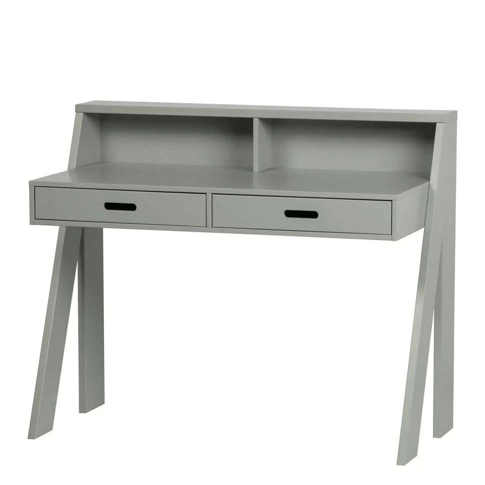 Dit Frisse, Moderne Bureau Connect Uit De Collectie Van Het Nederlandse Merk Woood Is Gemaakt Van Massief, Fsc Gecertificeerd, Grenenhout Voorzien Van Een Beton Grijze Afwerking. Het Bureau Beschikt Over Twee Lades (Hxbxd) 6.5X47.5X40 Cm Met Uitgefreesde En Afgeronde Handvaten. Handig Voor Het Opbergen Van Je Huiswerk Of Andere Zaken Die Je Liever Niet In Het Zicht Hebt Liggen.