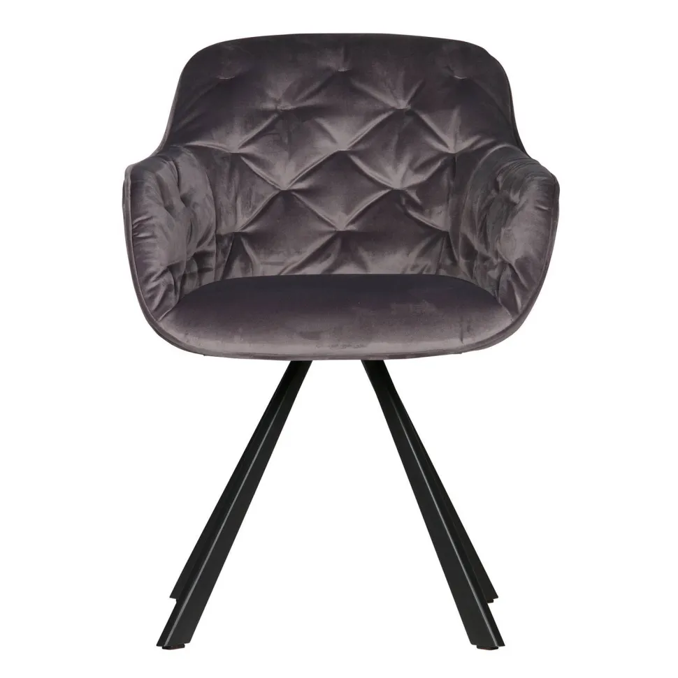 De Zitting Van De Elaine Eetkamerstoel Is Bekleed Met Een Fluweelzachte Velours Stof In De Kleur Antraciet. De Binnenkant Van De Rugleuning En Armleuningen Zijn Gecapitonneerd. Hierdoor Ziet Deze Stoel Er Uitnodigend Uit. De Zitting Van De Elaine Staat Op 4 Uitlopende Poten Van Zwart Metaal. Glijders Onder De Poten Beschermen Je Vloer Tegen Beschadigingen.