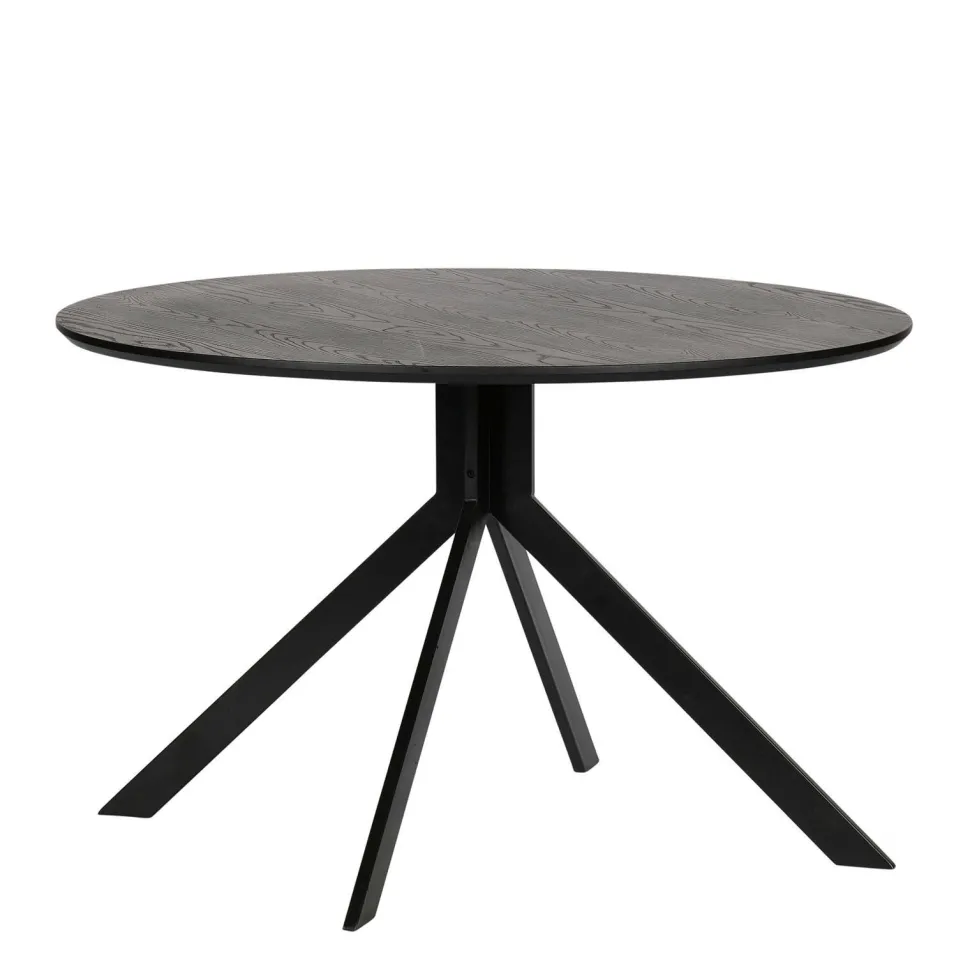 De Bruno Eettafel Met Een O Van 120 Cm En Een Dikte Van 25 Mm Heeft Relief En Is Afgelakt In Een Matzwarte Kleur. De Eettafel Heeft Een Zwart Gespoten Stalen Onderstel Met 4 Poten, Die Vanuit Het Midden Naar Buiten Steken. Eettafel Bruno Is 75 Cm Hoog En Wordt Als Bouwpakket Met Een Eenvoudige Montagehandleiding Geleverd.