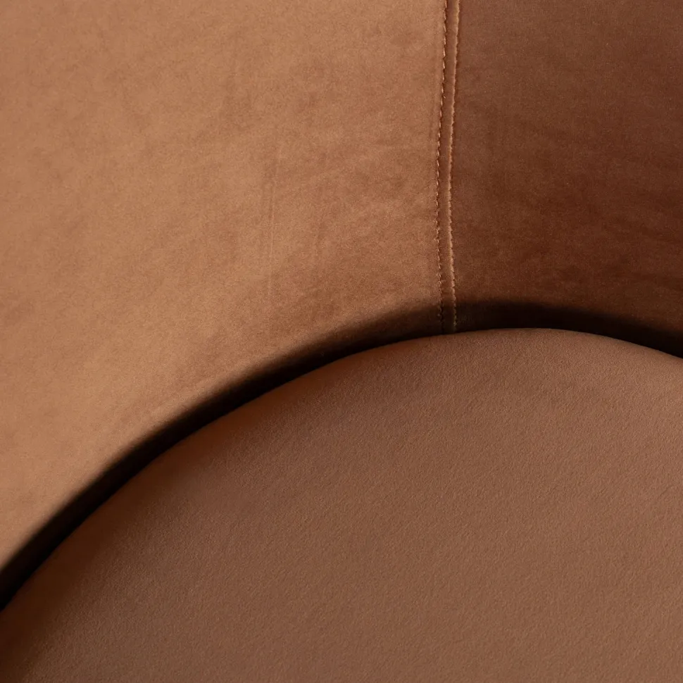 Elegante, Robuuste Draaifauteuil Bruin Velvet (100% Polyester) Met Zwart Stalen Frame Handig; Draai Vanuit Je Fauteuil In Elke Gewenste Richting H 78 Cm X B 79 Cm X D 82 Cm De Jada Draaifauteuil Uit De Collectie Van Het Nederlandse Merk Woood Exclusive Heeft Een Robuuste, Elegante Uitstraling En Is Voorzien Van Glooiende, Afgeronde Vormen. De Draaifauteuil Is Bekleed Met Een Rijke Velvet Stof In Een Warme Bruine Tint. Het Onderstel Is Gemaakt Van Staal Voorzien Van Een Zwarte Afwerking. Relaxen Was Nog Nooit Zo Stijlvol!