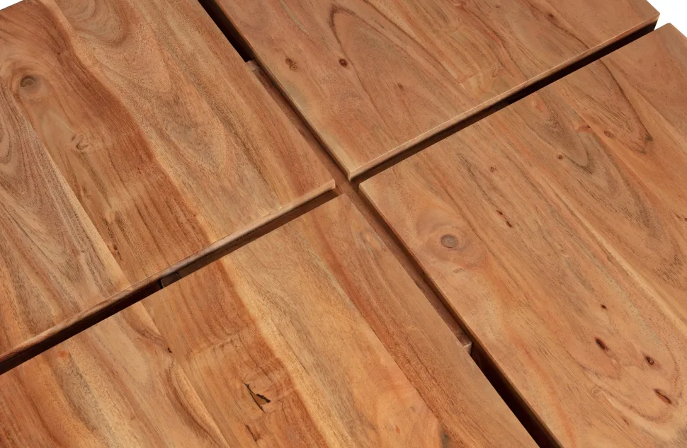 Acaciahout Is Gekenmerkt Door Haar Warme, Rode Gloed. Deze Kleur Zal Naar Mate Het Gebruik En Blootstelling Aan Licht Iets Zachter Worden. De Duidelijke Nerf- En Vlamtekeningen Geven Veel Karakter Aan Deze Duurzame Houtsoort. Kleurnuances, Oneffenheden En Barsten Geven Extra Diepte En Kenbaarheid Aan Dit Natuurproduct.