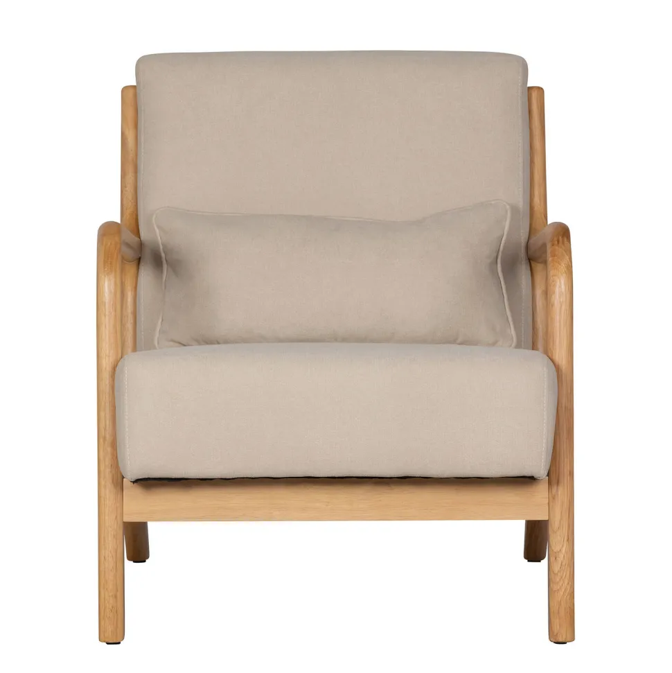 Fauteuil Mark Van Het Interieurmerk Woood Is Een Prachtige Slanke Fauteuil Die Bijzonder Goed Zal Staan In Elke Stijl Interieur. De Armleuningen, Poten En Het Frame Van Deze Comfortabele Fauteuil Zijn Gemaakt Van Rubberhout. Fauteuil Mark Is Gestoffeerd Met Een Zacht Geweven Stof In De Kleur Naturel. De Stof Voelt Zacht Aan, Is Van Een Zware Kwaliteit En Is Geschikt Voor Intensief Gebruik.