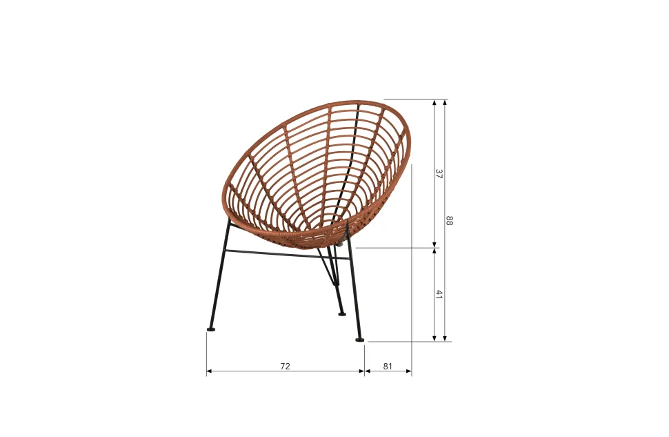 De Jane Loungestoel 88X72X81 Cm (Hxbxd) Is Een Mooie Blikvanger En Komt Uit De Collectie Van Het Nederlandse Merk Woood. De Loungestoel Is Gemaakt Van Pe Terra Kleur. Het Onderstel Van De Jane Loungestoel Is Van Metaal In De Kleur Zwart. De Afmetingen Zijn (Hxbxd) 88X72X81 Cm. De Zithoogte Is 41 Cm, De Zitdiepte Is 46 Cm En De Zitbreedte Is 45 Cm. Het Maximale Draaggewicht Per Stoel Is 150 Kg.