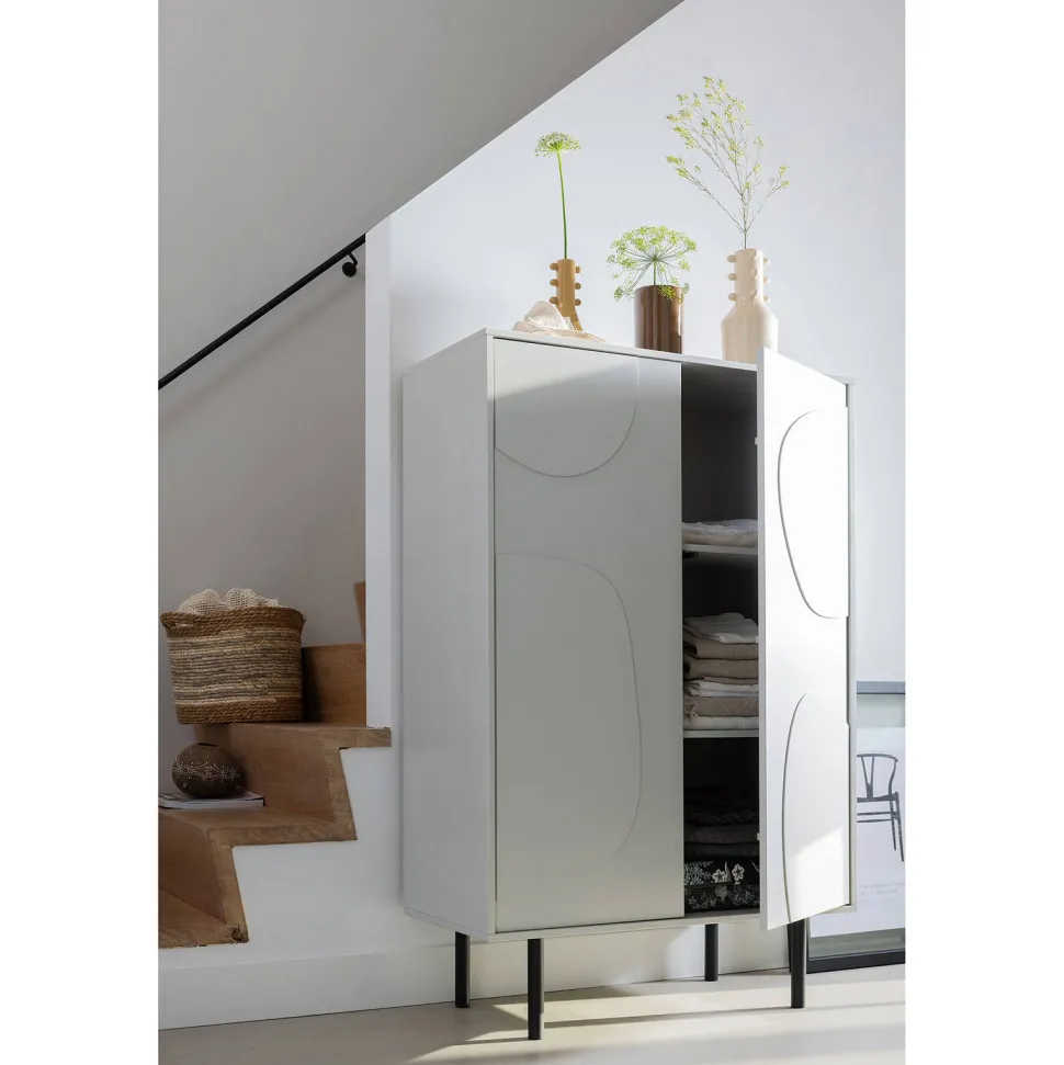 Een Clean Design, Speels Houtpatroon En Een Sprekend Kleurcontrast. Dat Zijn De Kenmerken Van Deze Cadiz Opbergkast Uit De Collectie Van Het Nederlandse Interieurmerk Woood. De Mistwitte Afwerking Houdt Het Ontwerp Stijlvol En Modern Met Als Spannende Tegenhanger De Stoere, Stevige Zwarte Poten. Het Organische Decor Maakt Dat Het Item Speels Oogt En Zich Goed Laat Gebruiken In Een Kinderkamer.