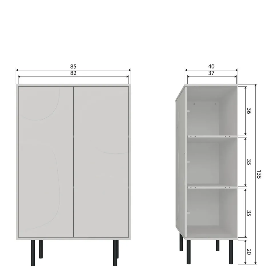 Stevige Kast Met Speels Gedecoreerde Deuren Gevormd Uit Fsc-Gecertificeerd Grenenhout Afgewerkt In Een Lichte Mist-Kleur H 135 Cm X B 85 Cm X D 40 Cm